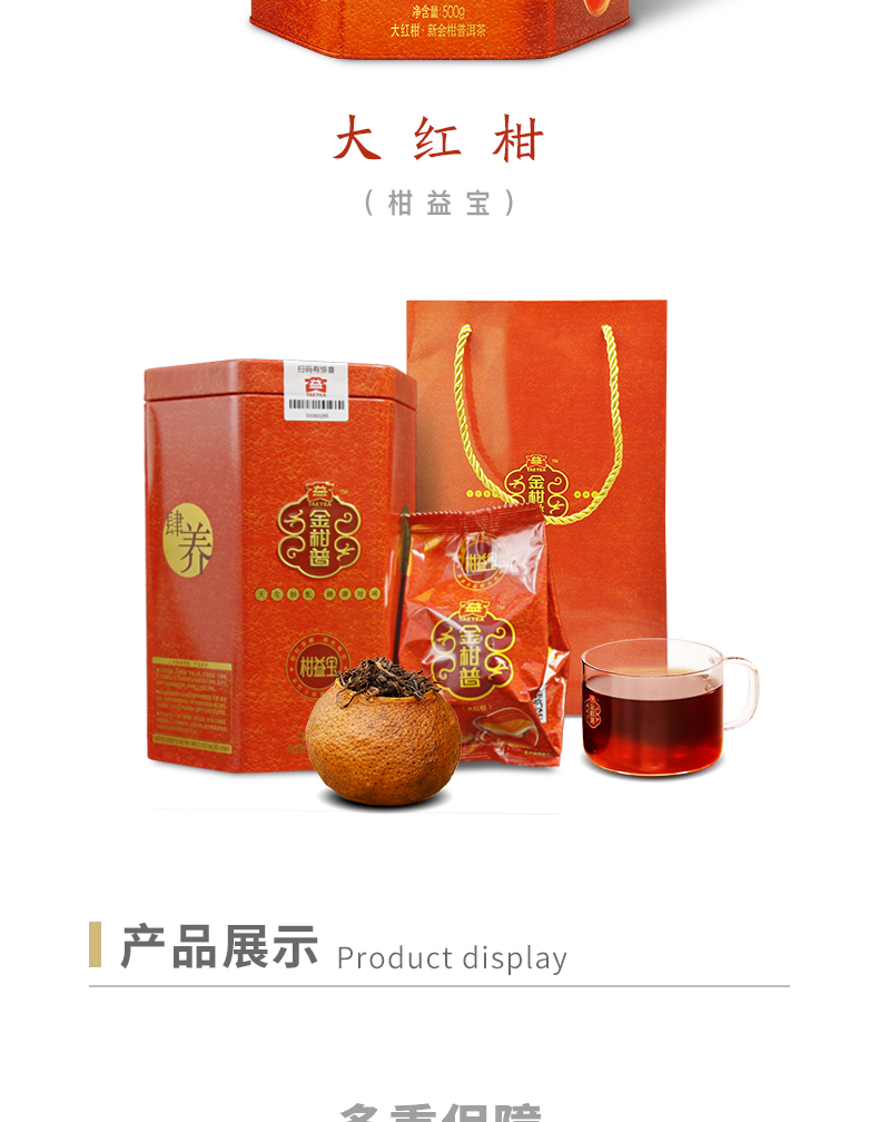 產(chǎn)品名稱(chēng):大益金柑普-大紅柑(柑益寶)